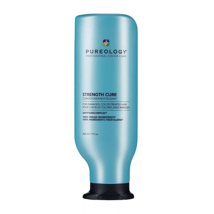 Pureology Strength Cure Conditioner helps fortify and repairs damaged, colour-treated hair with key ingredients Keravis and Astaxanthin and a signature aromatherapy blend of Raspberry, Peach, and Water Flowers.